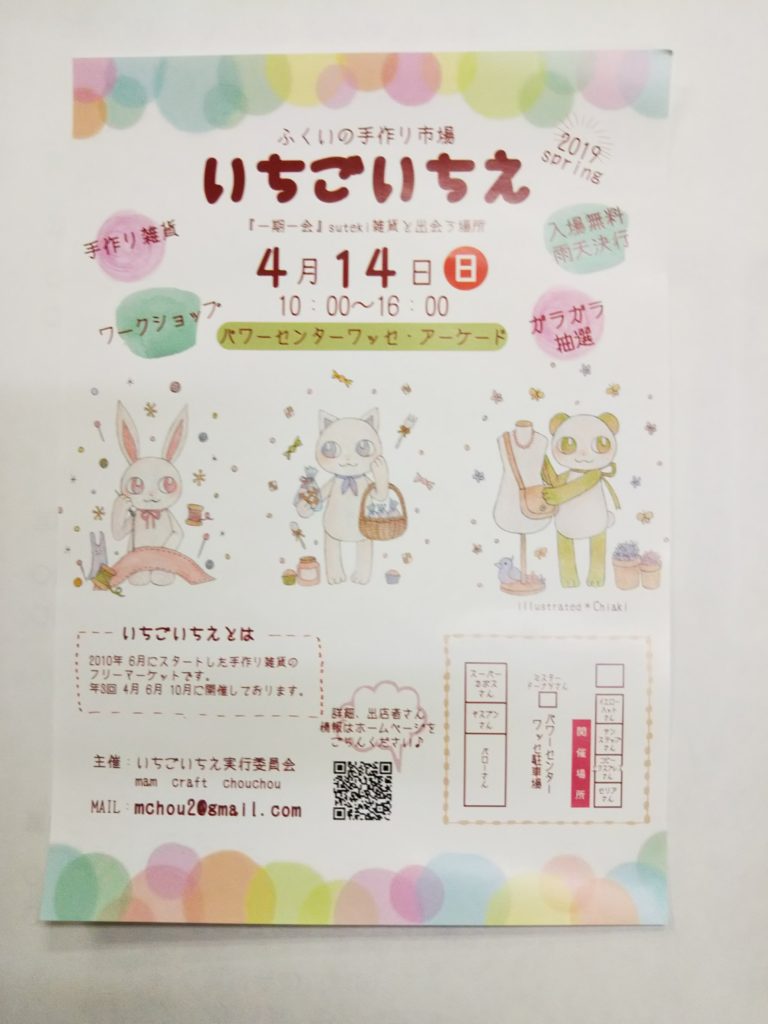 福井市のパワーセンターワッセ内で行われるハンドメイドフリーマーケットに出店します。